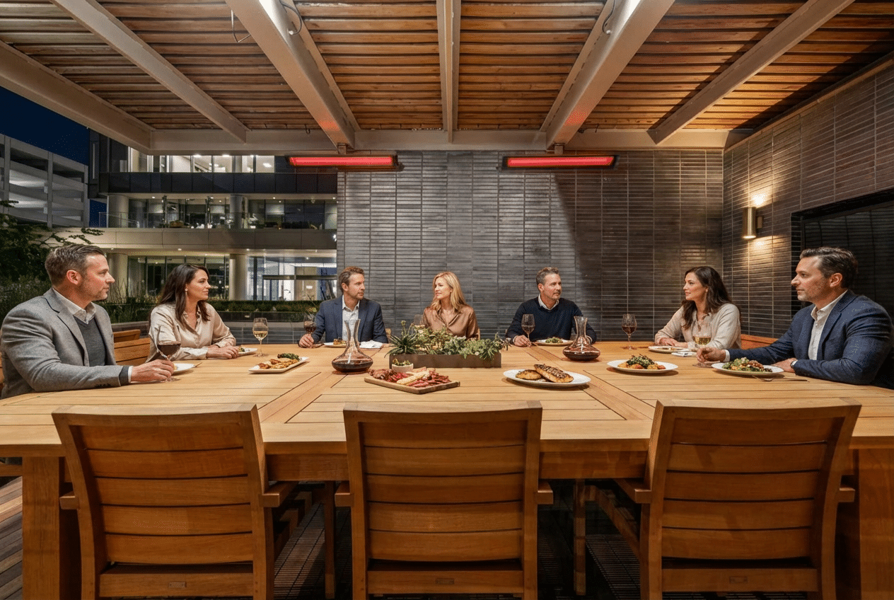 The Boardwalk serves as a prime example of how thoughtfully designed outdoor spaces can enhance work-life balance and inspire employee well-being. By incorporating Bromic Platinum Electric heaters, The Boardwalk has created a multi-use haven that extends the office experience beyond traditional walls, fostering collaboration, relaxation, and a vibrant community atmosphere.